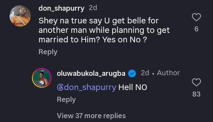 Taking to the comment section of one of her recent posts, the fan questioned if the rumours of Bukola getting pregnant while planning to get married to Damola were true.