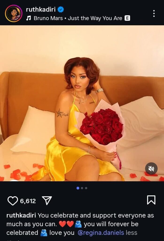 Nollywood actress Ruth Kadiri has publicly shown her support for her colleague, Regina Daniels.