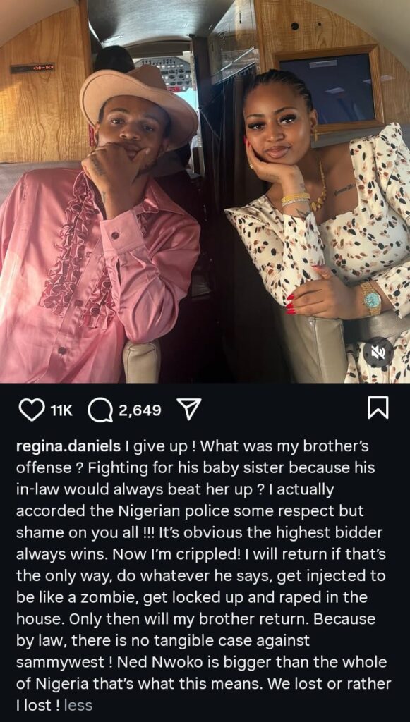 “Ewoo, Me I will return and do whatever he says, get injected and r@ped in the house” – Regina Daniels accepts defeat against Ned Nwoko