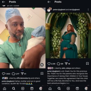 He shared the good news on his Instagram page, accompanied by photos of himself holding the newborn. Expressing gratitude to God, Peters said he, his wife, and their son are in good condition.