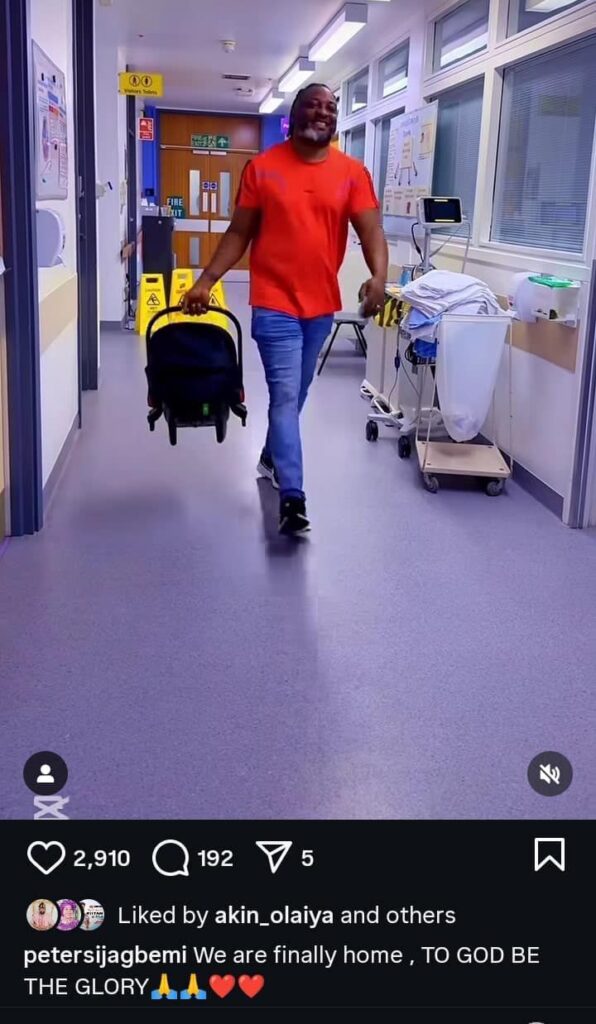In an update, Peter revealed that he and his wife have left the hospital and have finally returned home. The Yoruba actor expressed gratitude to his Maker.