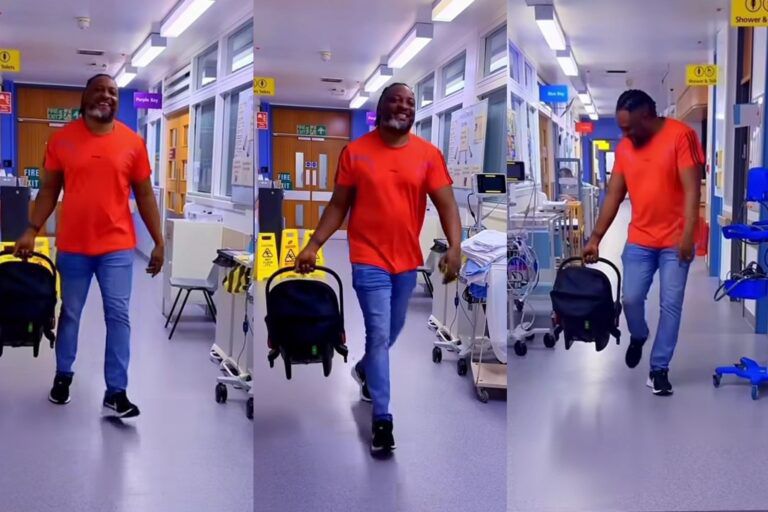 “Iya Olomo To Dele Oo” – Actor Peters Ijagbemi grateful as he and wife return home, following birth of their son (Video)