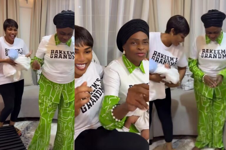 Adorable video of Iyabo Ojo and Juma Jux’s mother celebrating their grandson as he turns one month old