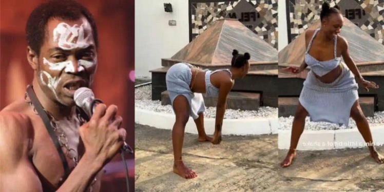 “You still wan do olosho for Baba De@d Body” – Mixed reactions pour in as dancer Korra Obidi twerks so hard on the grave of Fela Anikulapo Kuti (Video)